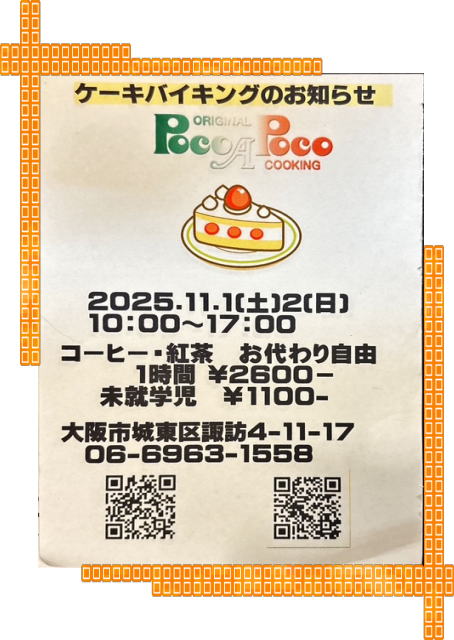Mail : pocoapoco-1993@ams.odn.ne.jp  TEL 06-6963-1558 ご予約お待ちいたしております。
